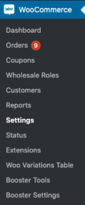 Locate the ‘WooCommerce’ options located at the left hand side, open it and click Booster Settings, if you can’t see this you do not have the correct permissions or have this feature enabled.